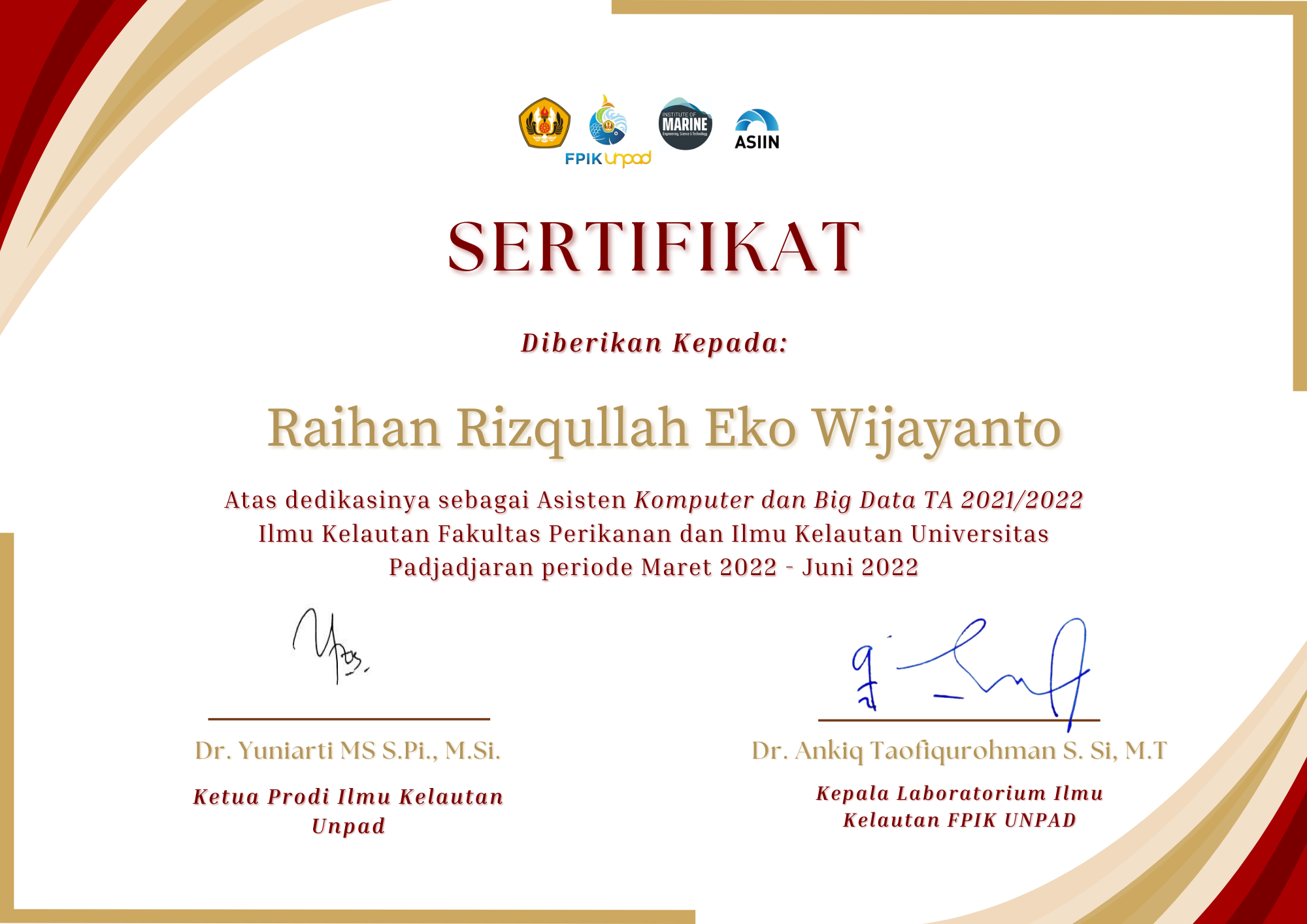 Teaching Assistant for the Computer & Big Data practicum course. This lab session provided hands-on application of theoretical concepts taught in lectures, enabling Marine Science students (Class of 2021) to develop practical skills in Python programming and data processing through direct and guided practice.
